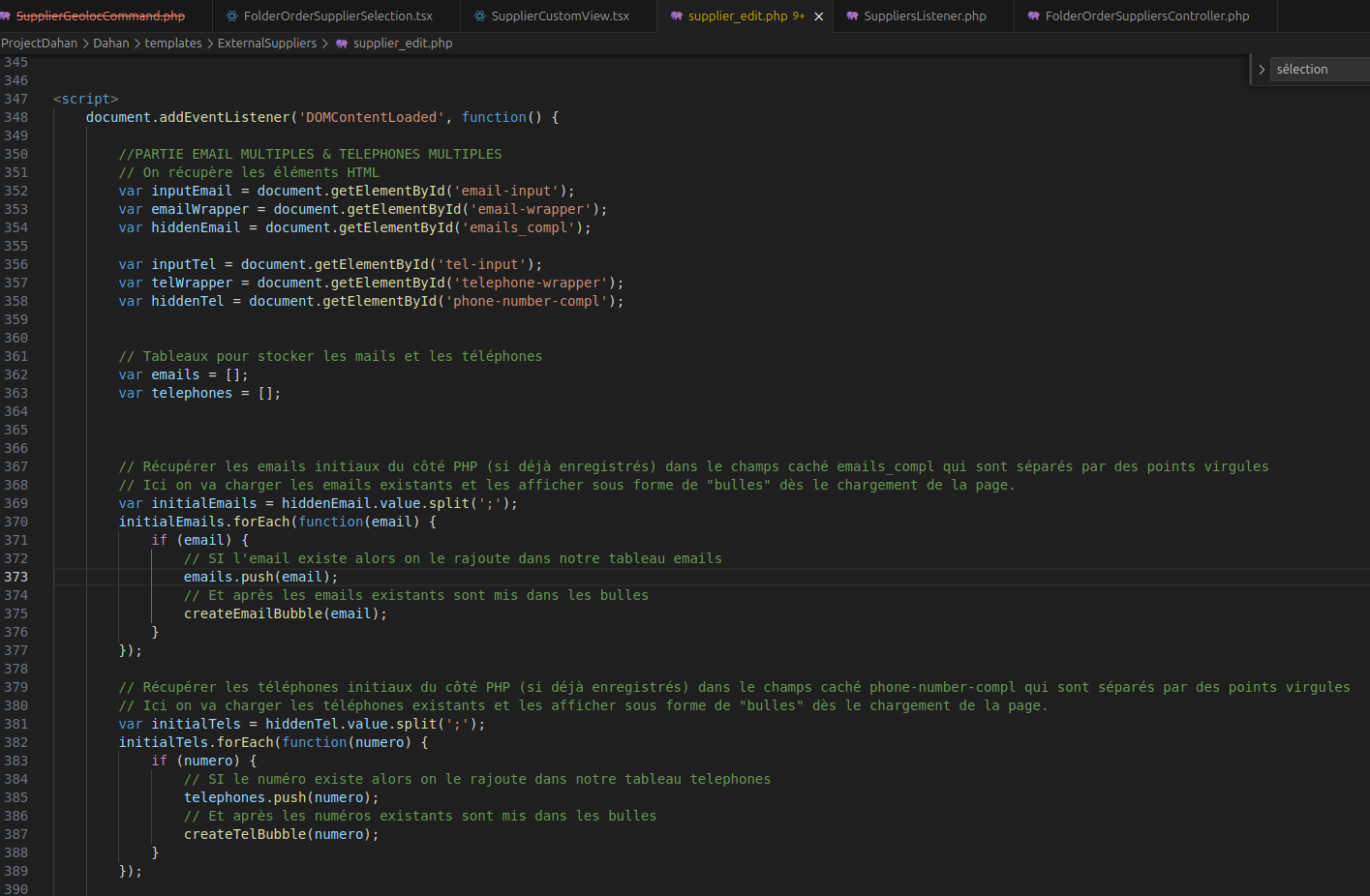 Ces champs servent à stocker les données au bon format pour les envoyer côté serveur (avec des ;). C’est dans le fichier SuppliersListener qu’on a ensuite précisé que ces champs devaient être exportés, c’est-à-dire pris en compte lors de l’enregistrement ou de la mise à jour des données du formulaire.