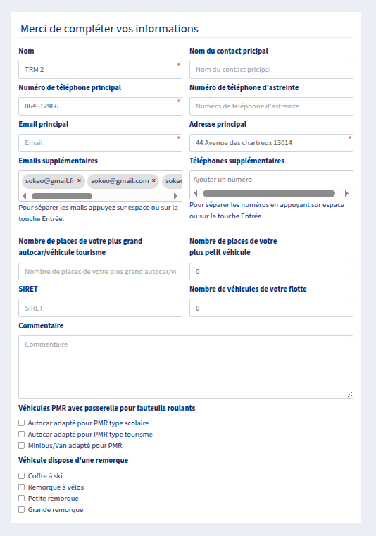 L’objectif était de permettre à la cliente d’avoir plusieurs moyens de contacter un fournisseur, surtout si celui-ci dispose de plusieurs adresses mail ou numéros professionnels.