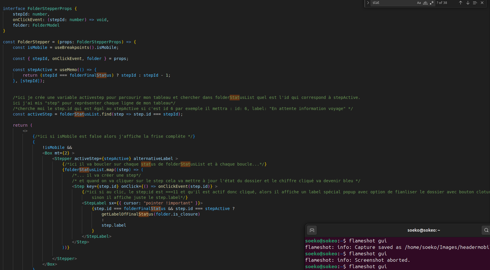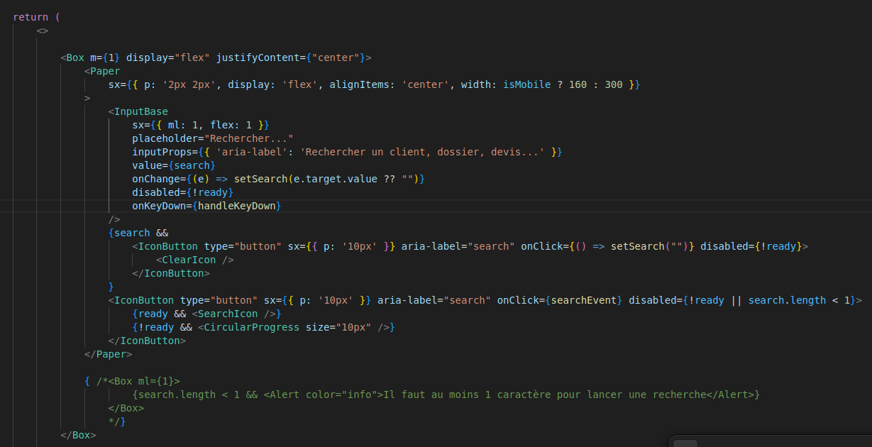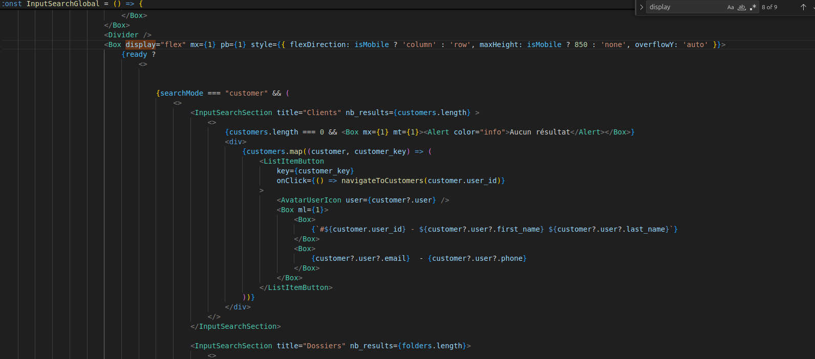Pour mieux me repérer dans l’arborescence du projet, j’ai appris qu’il était possible d’accéder rapidement à la définition d’une fonction, d’un composant ou d’un élément en faisant Ctrl + clic dessus. Cela m’a été très utile pour comprendre où et comment les éléments étaient définis.