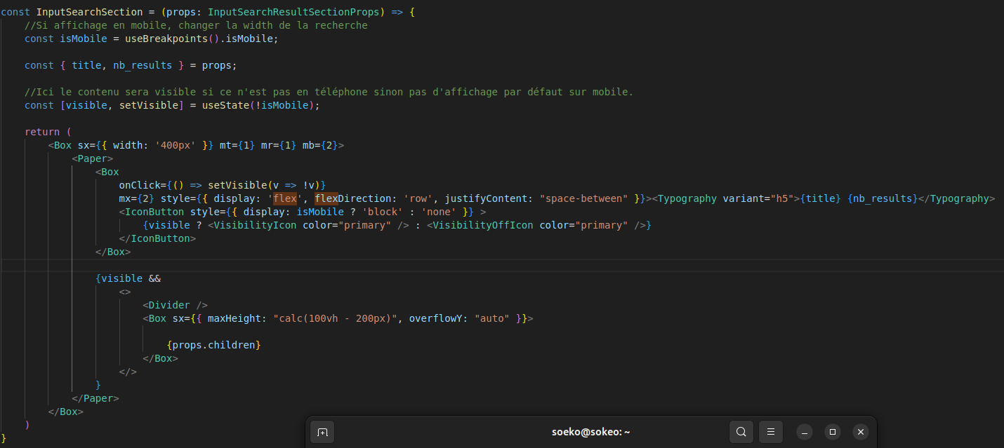 Enfin, j’ai transmis la prop nb_results au composant InputSearchSection en lui précisant sa valeur, pour qu’il puisse l’utiliser dans l’affichage.